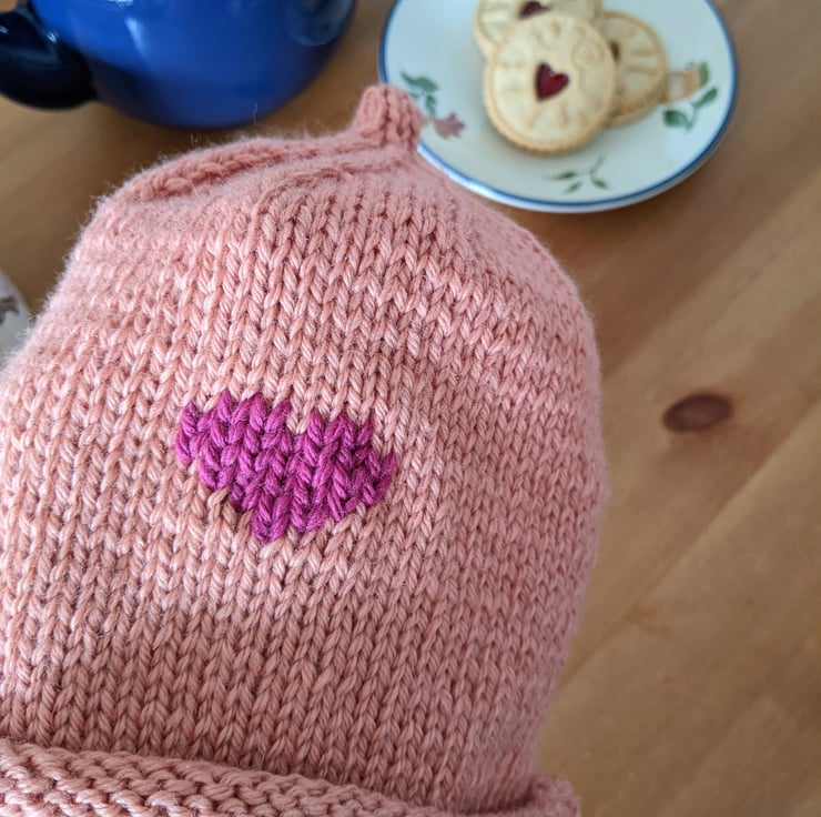 It's hand knitted using an aran yarn and I've embroidered a little purple heart on the front.