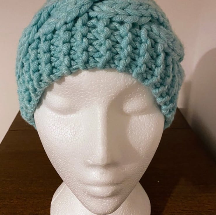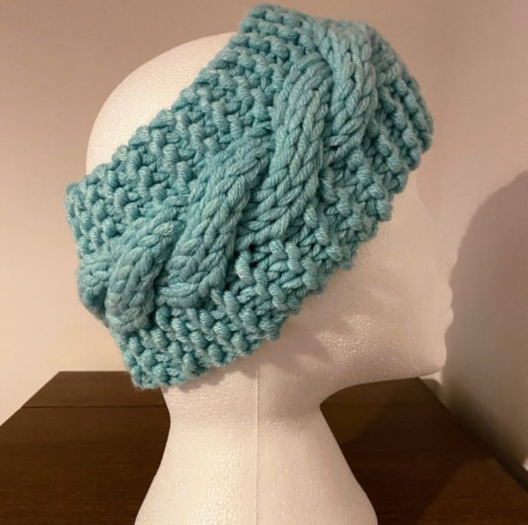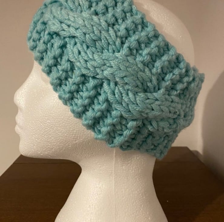 Super chunky cable knitted headband/ head wrap / ear warmer. Perfect for keeping your hair away from your face and for days when you don’t want to wear a hat. Soft and warm, made with acrylic yarn.