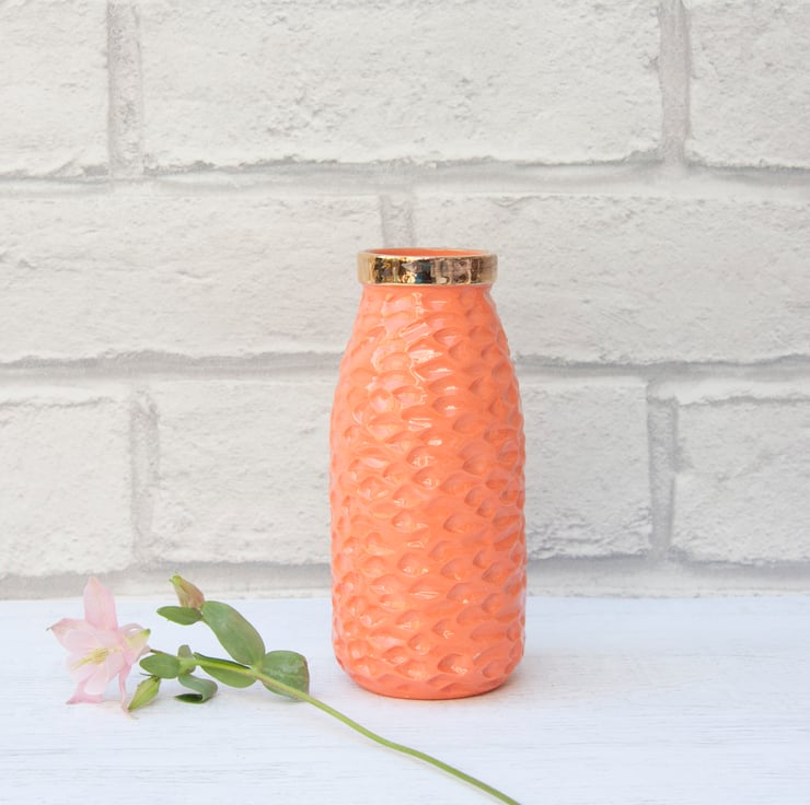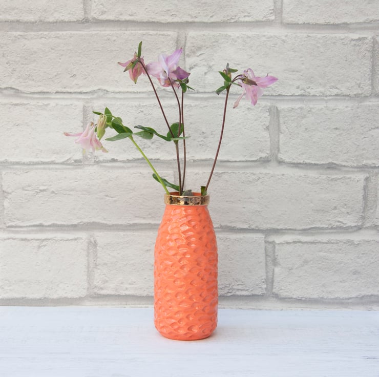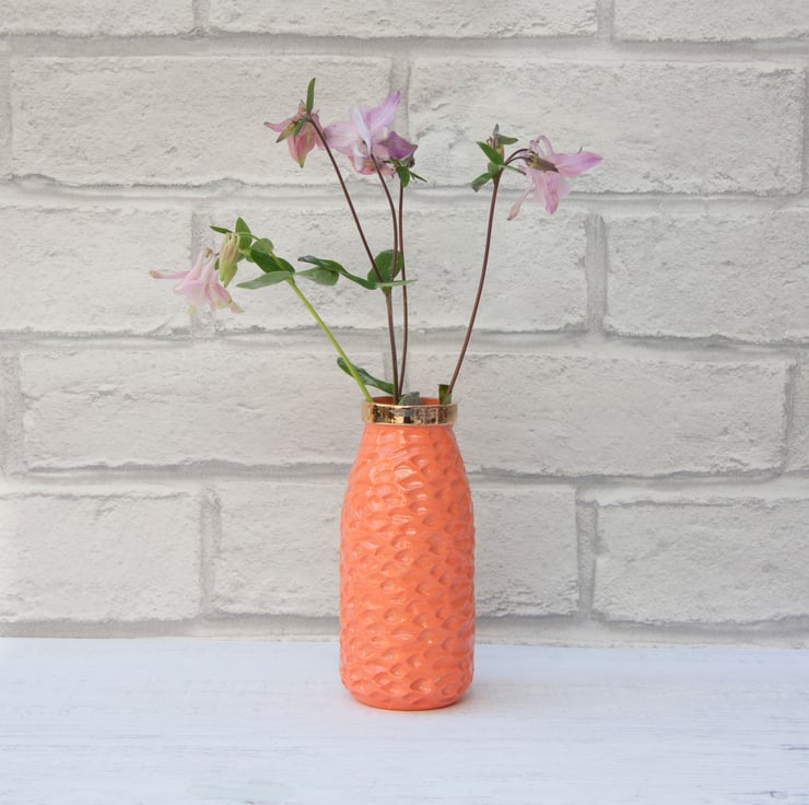 Small porcelain milk bottle vase, with a gold lustre rim, just like the gold top of yesteryear!