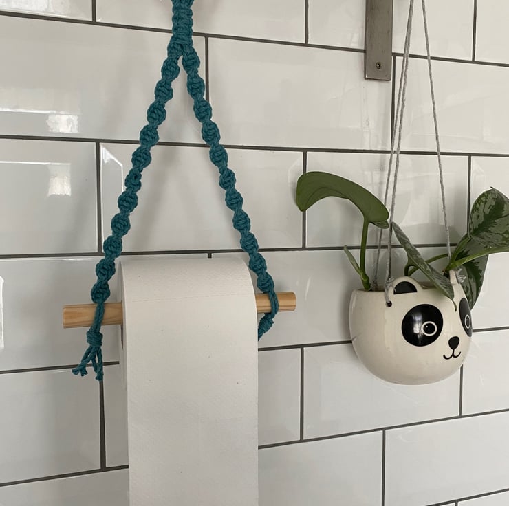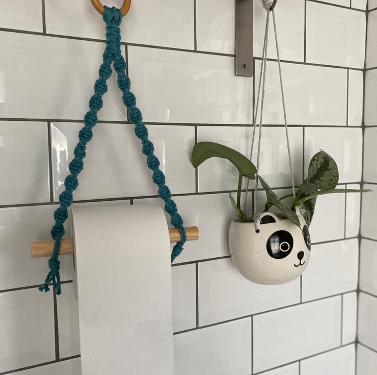 Teal blue toilet paper roll holder, toilet roll storage, bathroom accessories, boho bathroom decor, farmhouse cottage decor
