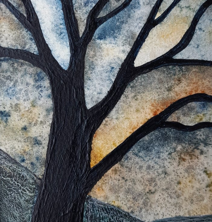 Thereness is an imaginative painting in the Ness Series. It uses colour and texture to create mood and atmosphere. It's about being there wherever there is......in a moment, a dream, a place.