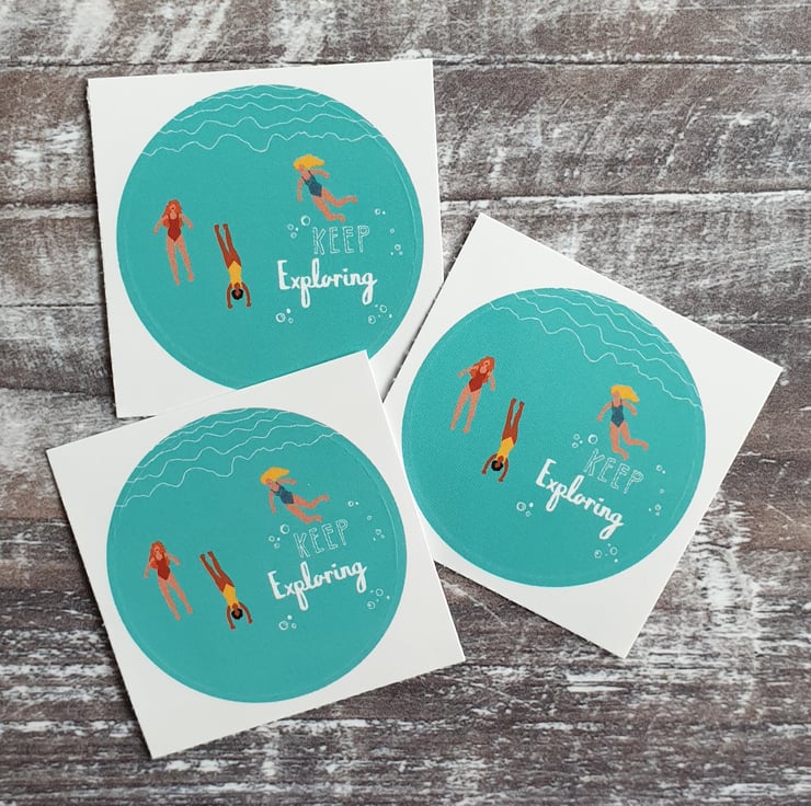 Round 38mm (3.8cm or 1.49 inches) thick and shiny vinyl stickers, hand-designed by Daffodowndilly in Shropshire and printed in the UK.