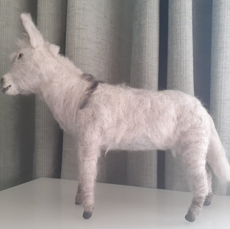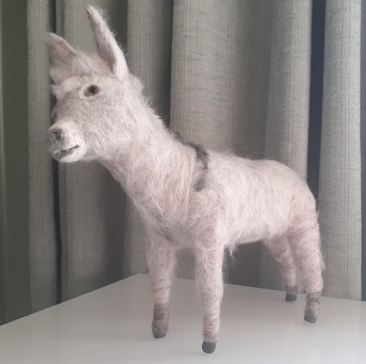All wool needle felted on a wire armature so body and legs are flexible allowing them to be posed as desired