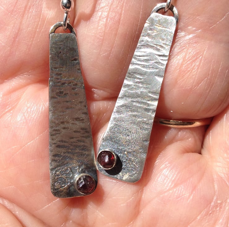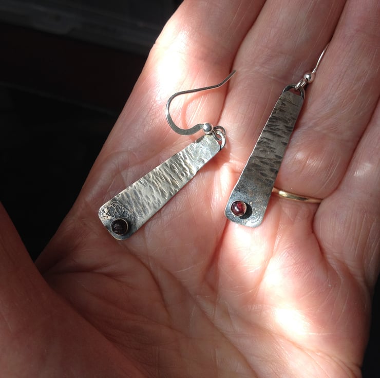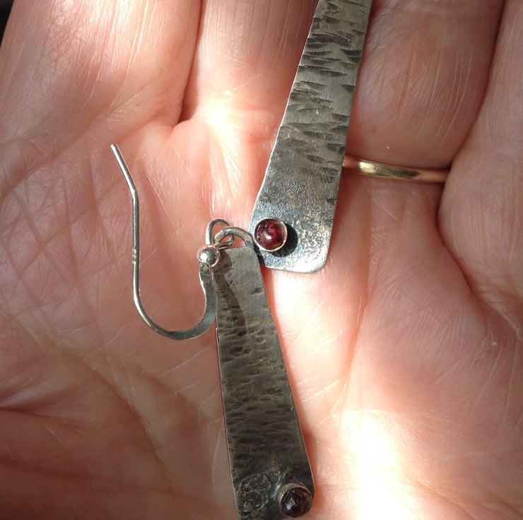 Sterling silver dangle earrings with a London Mudlark found Thames Garnet. The earwires are sterling silver.