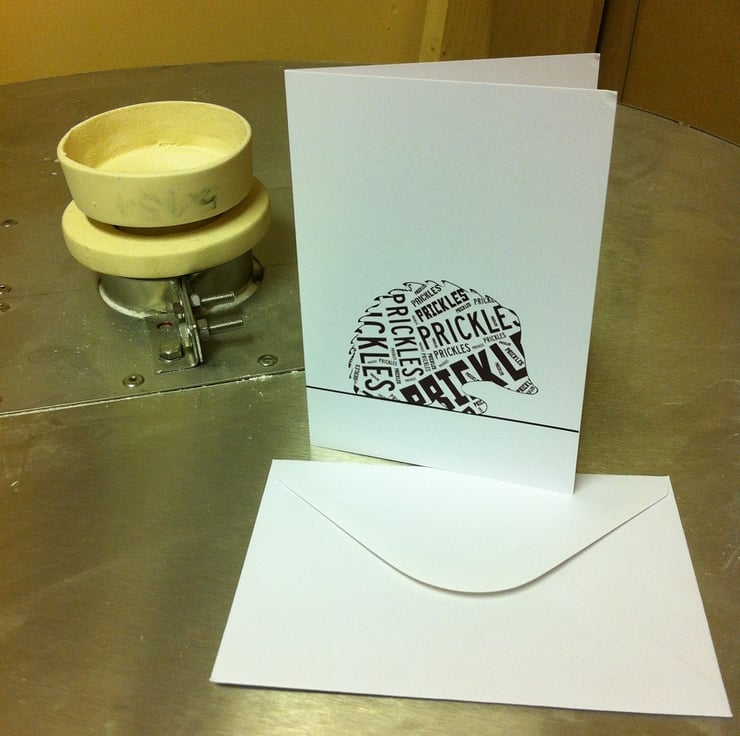 This brown Prickles Hedgehog card is made from thick 340gsm, sustainably sourced paper stock. With a light satin coating on the outside, the inside is blank and left uncoated, making it easier for you to write your own message.