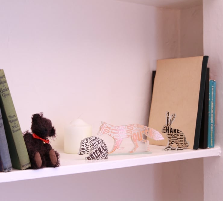 This Prickles Hedgehog card is taken from the original glass design that was inspired by the different names that hedgehog spines are called and then creating various word clouds with them. I tried spines too but this one tickled me a lot more!