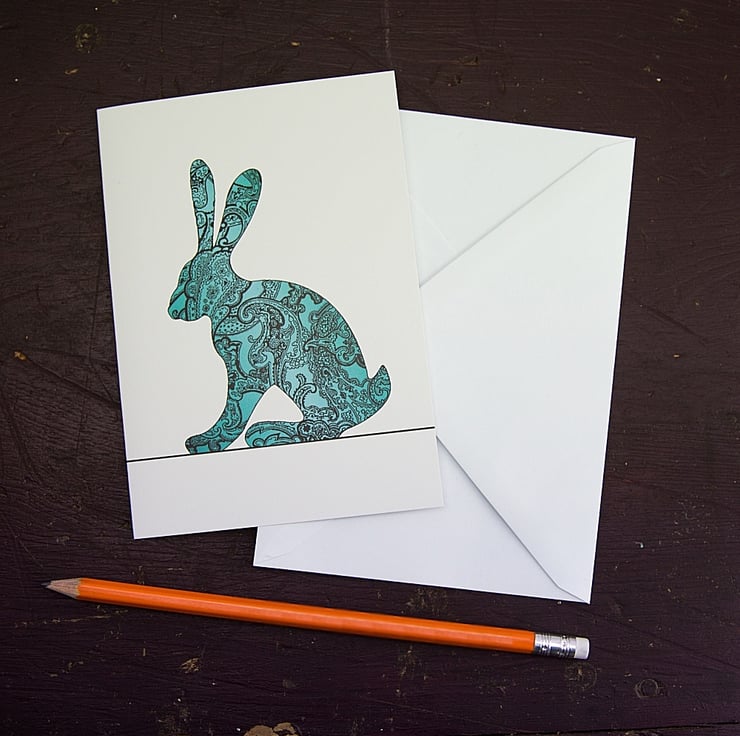 This Paisley Hare card is made from thick 340gsm, sustainably sourced paper stock. With a light satin coating on the outside, the inside is blank and left uncoated, making it easier for you to write your own message.