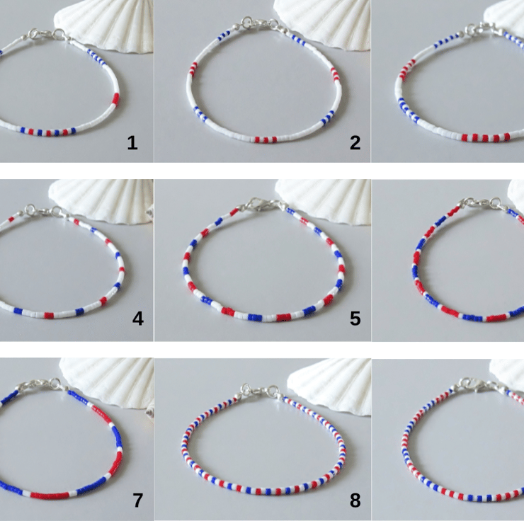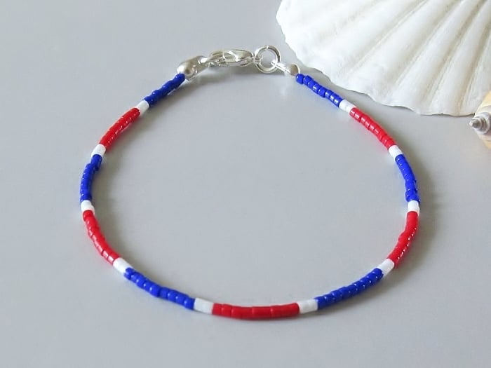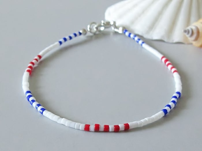 For these skinny stacking bracelets, I chose lovely shades of red white & blue.