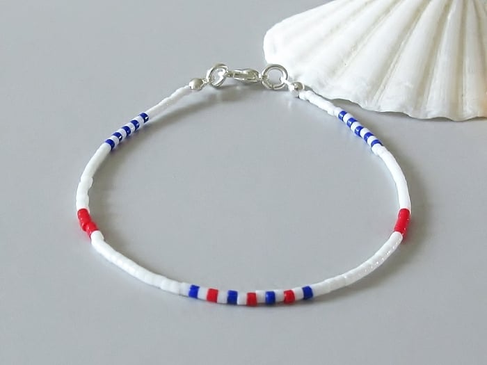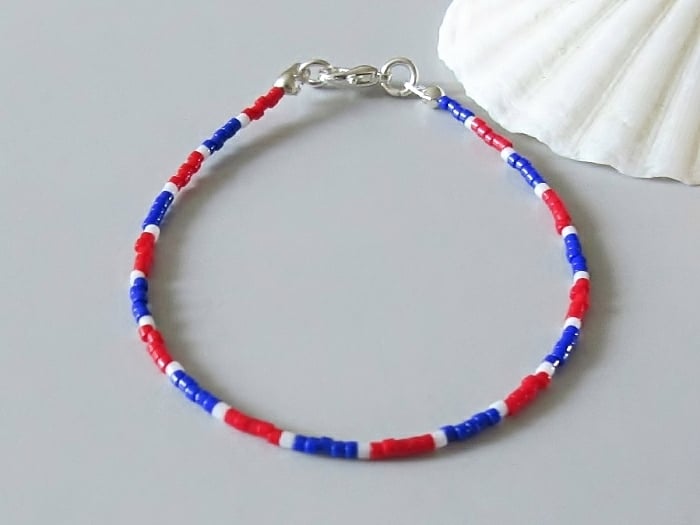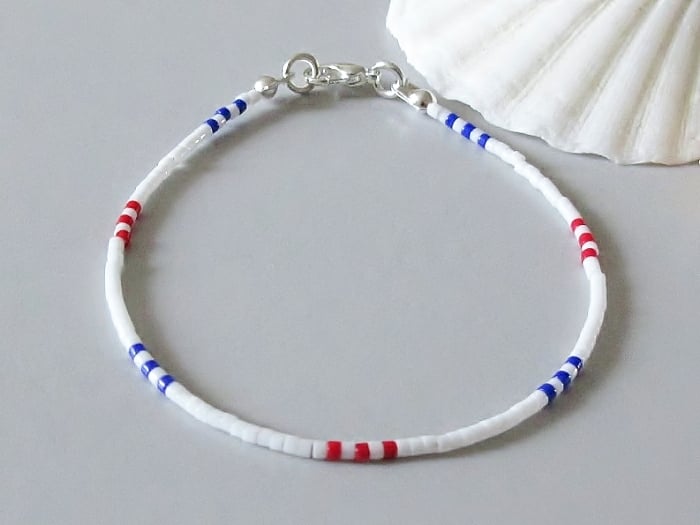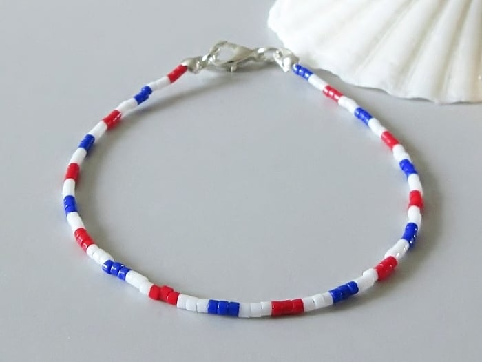 For these skinny stacking bracelets, I chose lovely shades of red white & blue.