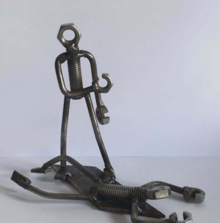 Welded sculpture of the famous image of Muhammad Ali vs Sonny Liston. This is a one of a kind piece of art and would make a great gift for any boxing or sports fan.