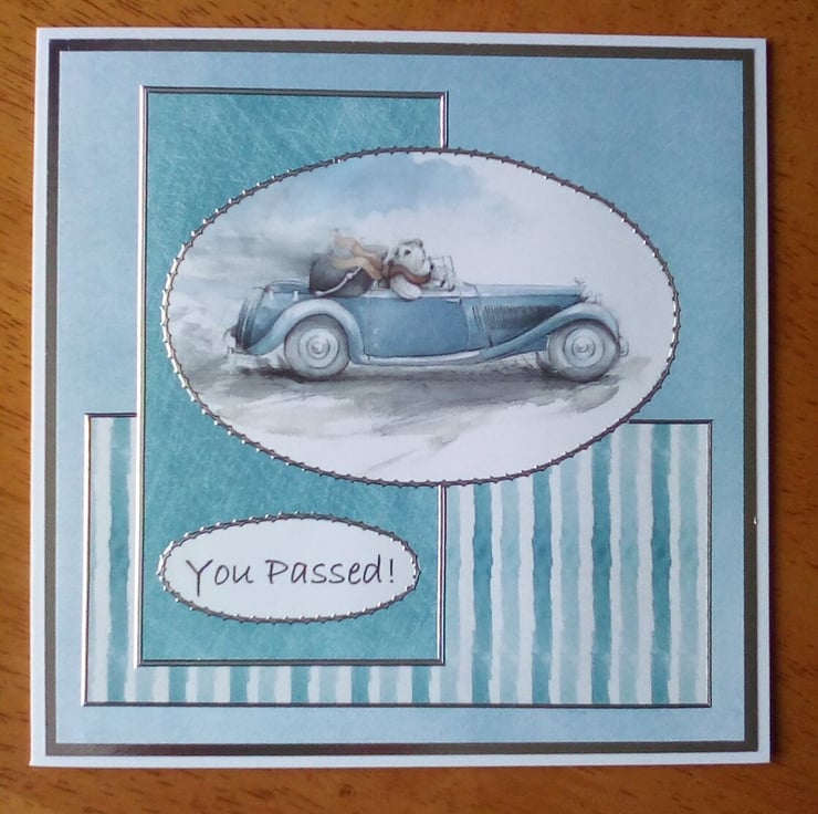 This card was hand made by me using papers printed from the Docrafts Wellington bear card making cd.