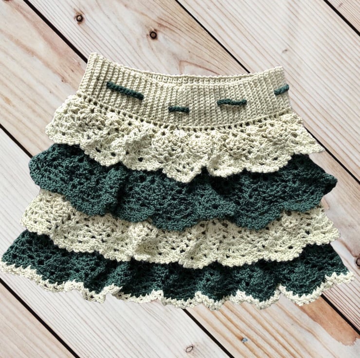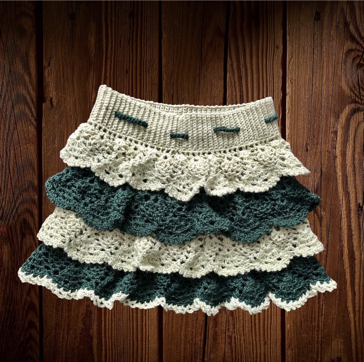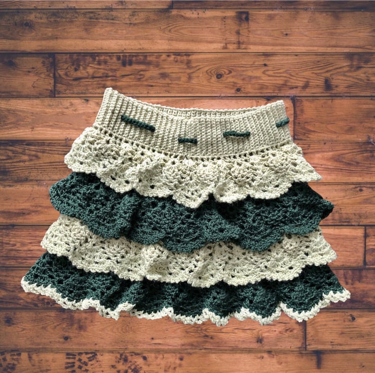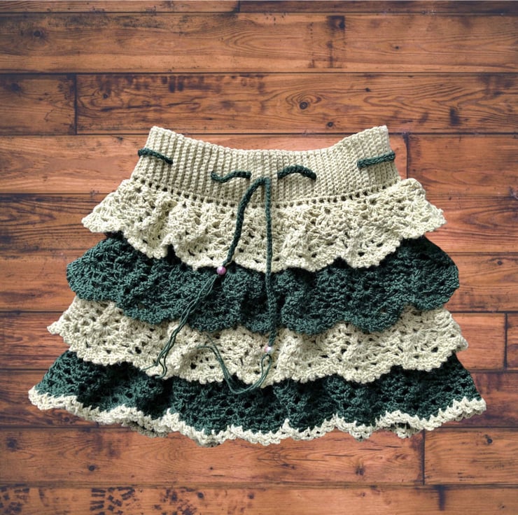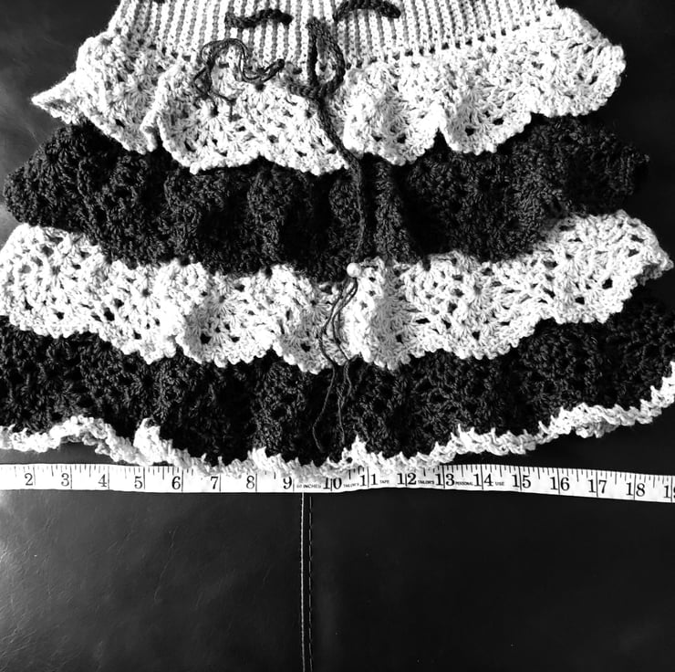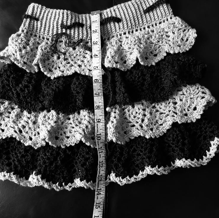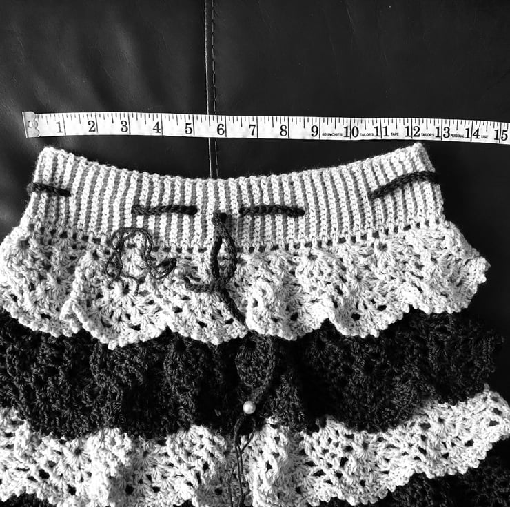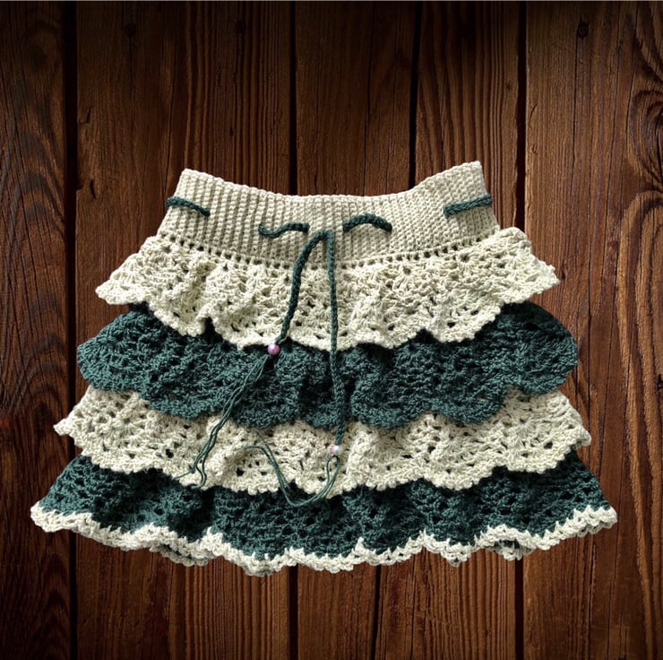 This is a beautiful handmade crochet ruffle mini skirt.