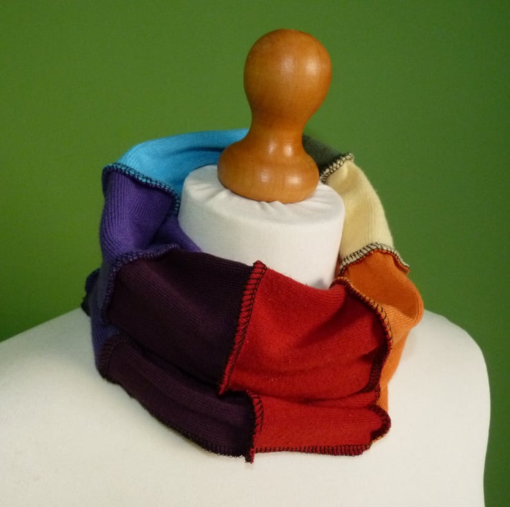 I have designed and created this fantastic cowl to keep you warm and snug. It is made from previously loved and recycled jumpers, that I have washed in a hot temperature and pre-shrunk. I have then cut and re-stitched the jumpers, with all seams being professionally finished with a serger/overlocker, to create this fabulous cowl.