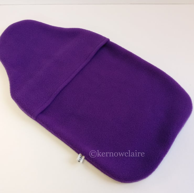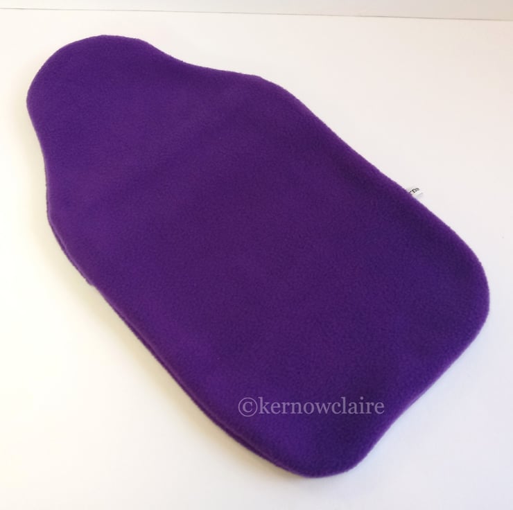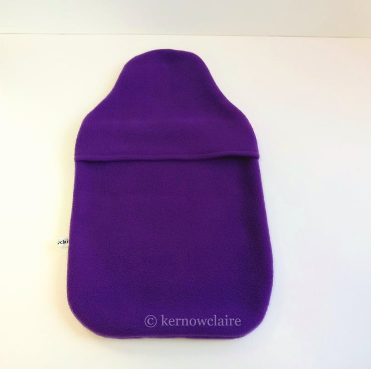 This is a lovely hot water bottle cover, handmade in a purple fleece fabric,