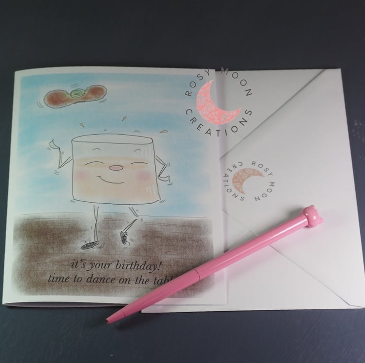 This fun card measures approximately 12x18cm and was drawn on the iPad by me before being printed onto quality card. The card is blank on the inside for your own special message and comes with a matching envelope.
