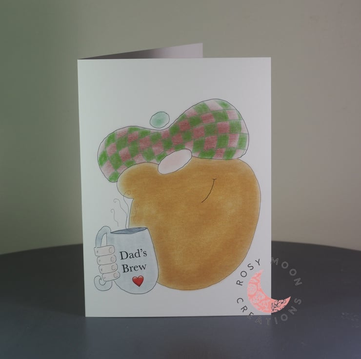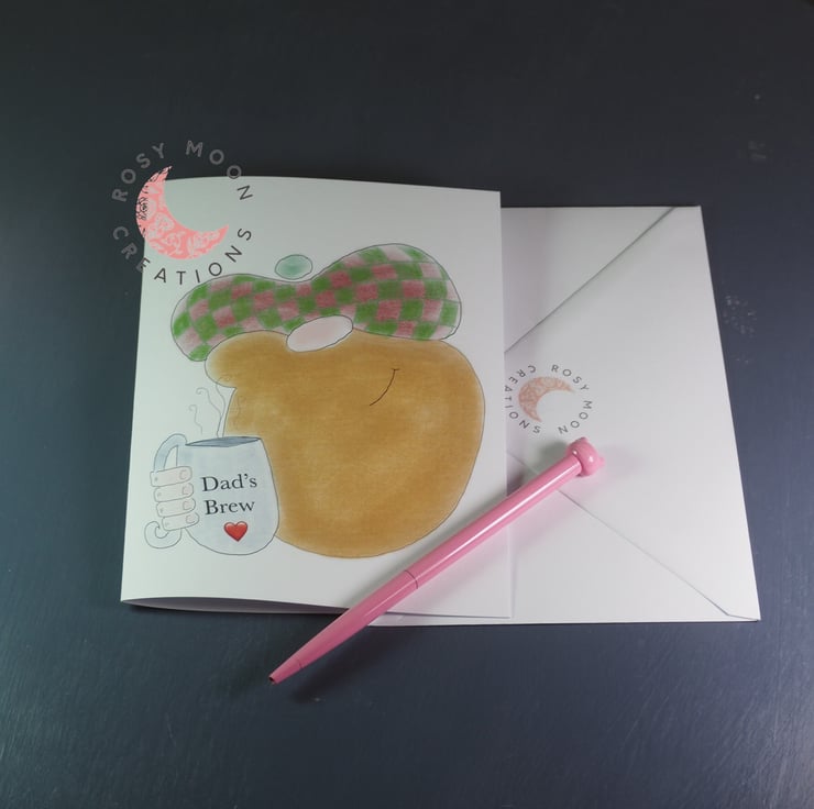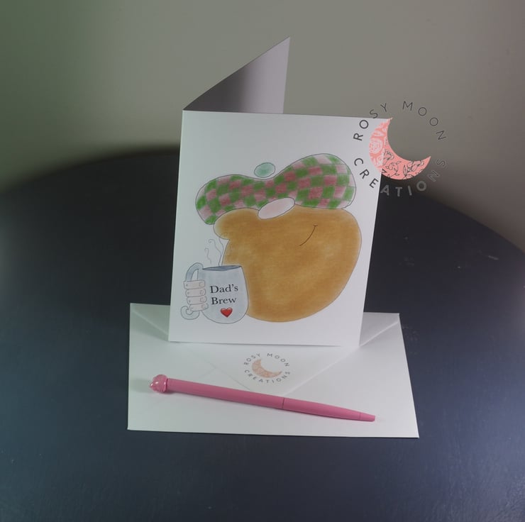 This 12x18cm card of a happy, beardy dad with his cuppa was drawn by me on the iPad and then printed onto quality card. The card is blank on the inside, making it perfect for any occasion. The card comes with a matching envelope and is wrapped in a compostable bag.