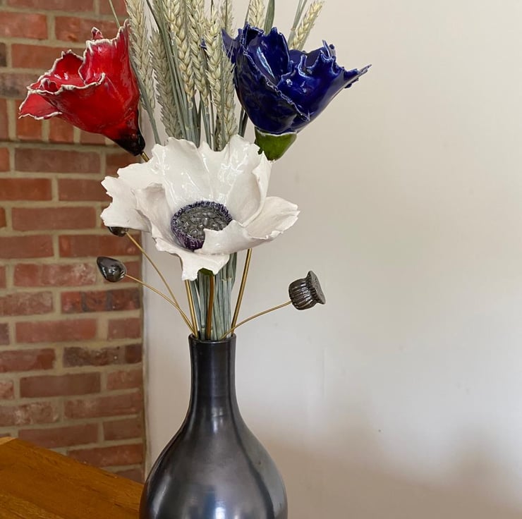 Every Poppy flower is unique, the petals are individually handmade and created from a high quality fine white clay, and glazed to produce a beautiful everlasting flower. Your Poppy flowers will look amazing in a vase to bring an elegance to your table, on a shelf or cabinet. The arrangement would make a spectacular handcrafted centre piece or table arrangement.