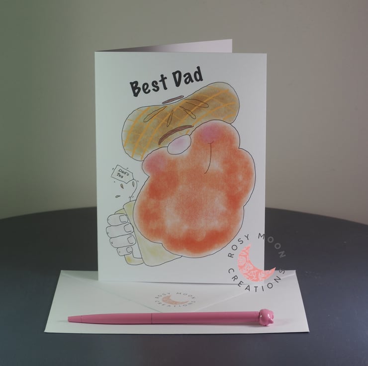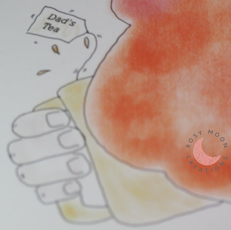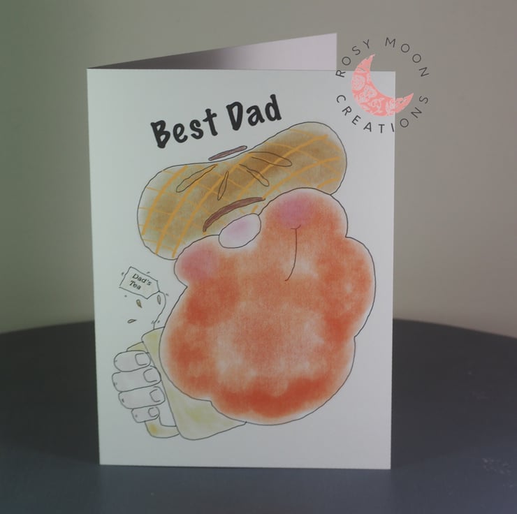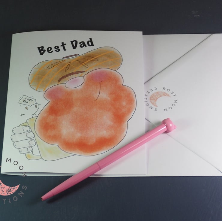 A 12x18cm card featuring a bearded dad with his cup of tea which has been drawn by me on the iPad and then printed onto quality card.