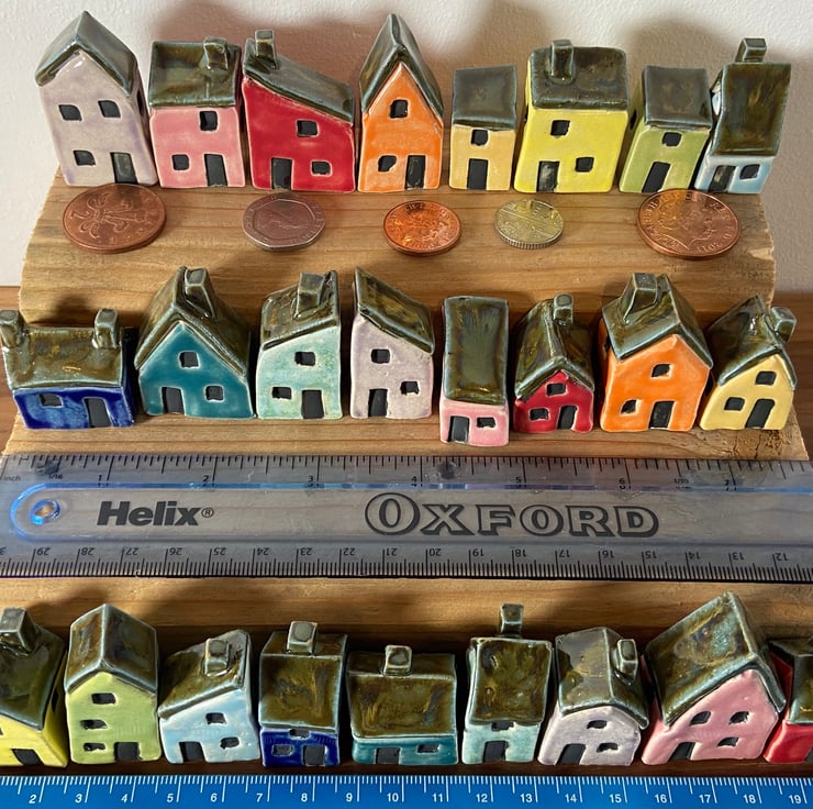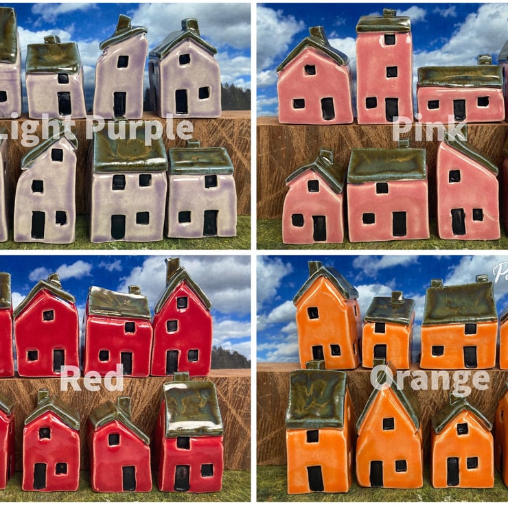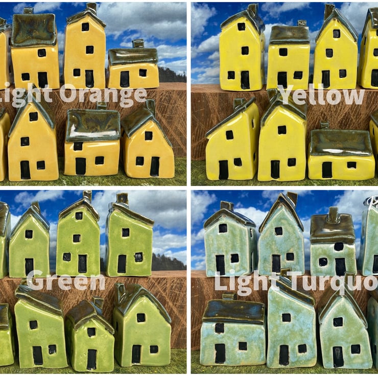 You pick the number of houses you would like and the colours, I pick a set in complimentary styles that work well together.