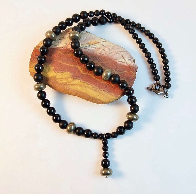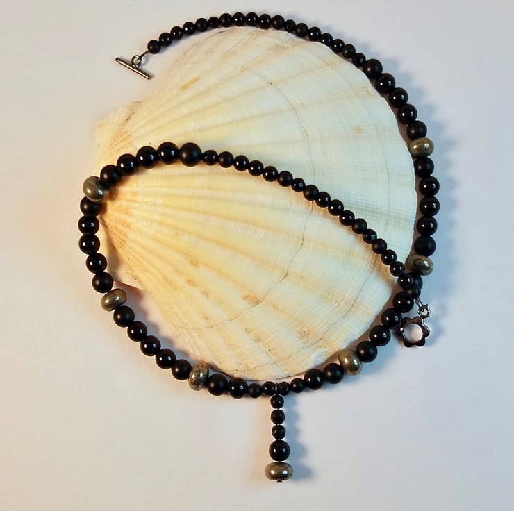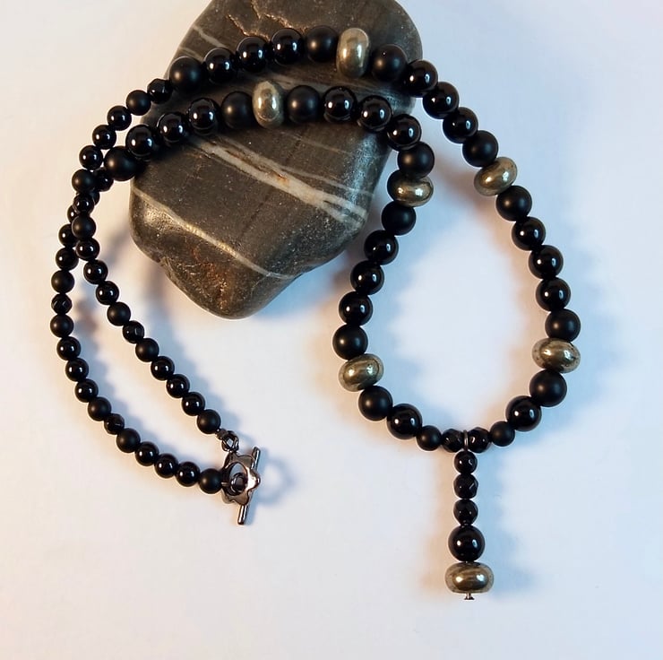 Black Onyx And Pyrite Necklace - Handmade In Devon, Free UK Delivery.