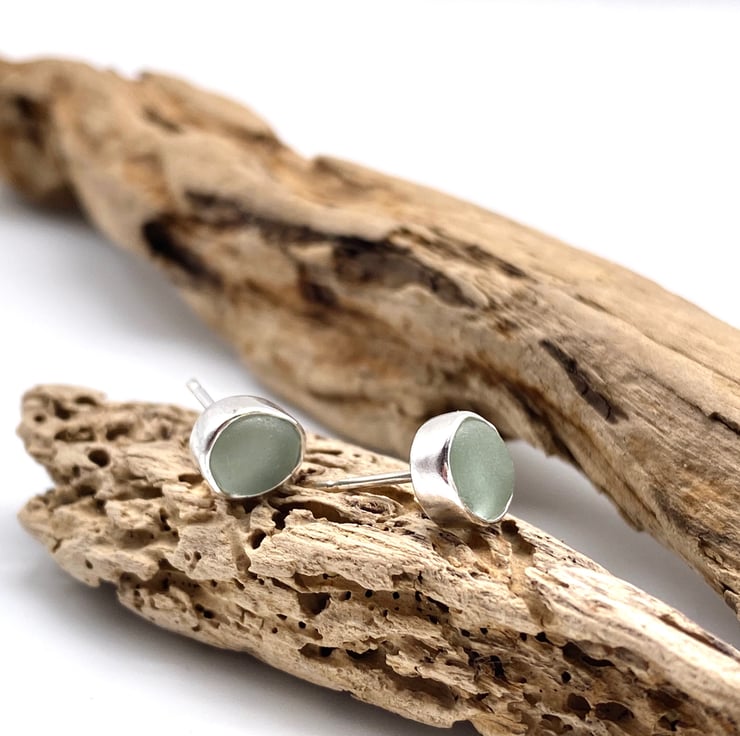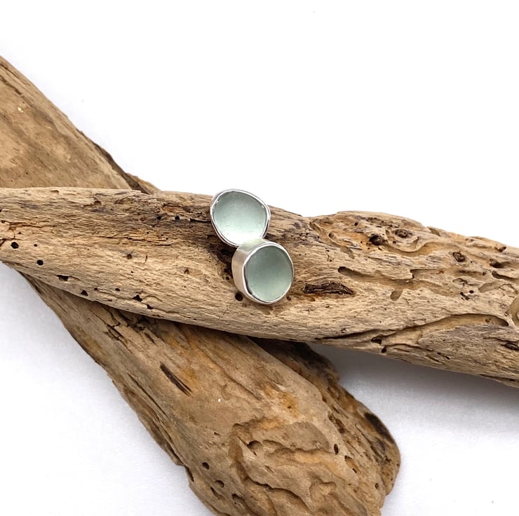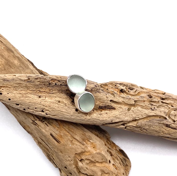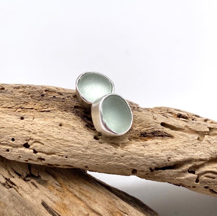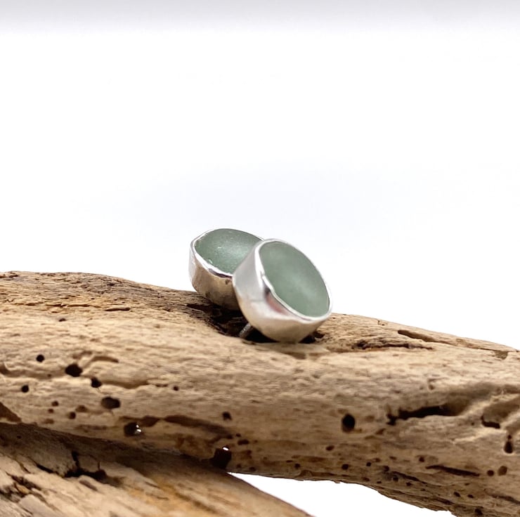 Beautiful aqua sea glass stud earrings. These pieces of sea glass have been hand picked from our beaches on the Isle of Wight.
