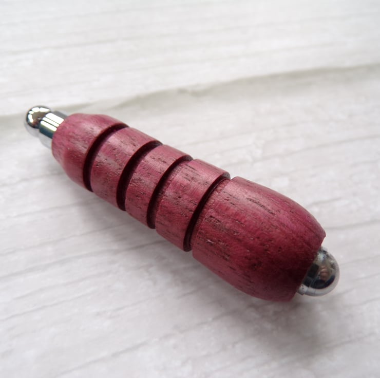 A handmade light pull made from Purple Heart wood. A beautiful purple colour that over time darkens and is extremely hard wearing. Turned on a lathe, sanded and polished with wax for lasting protection. It is approximately 65mm long and 17mm at its widest point. Chrome fittings and easy to fit.