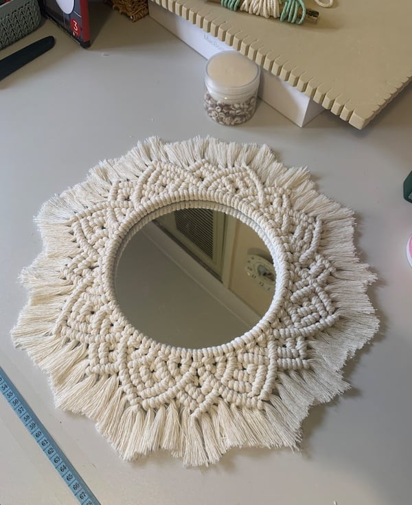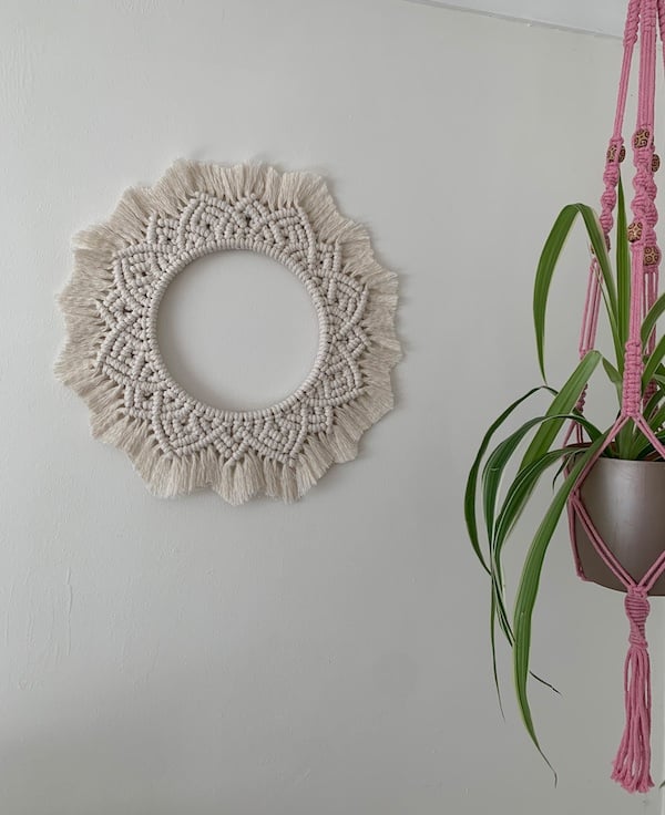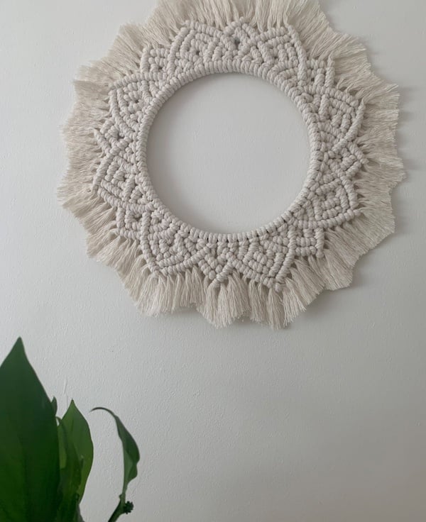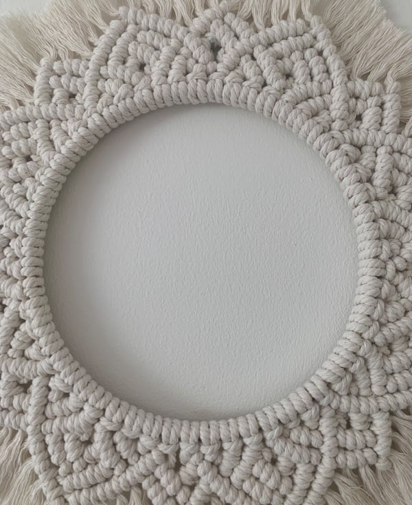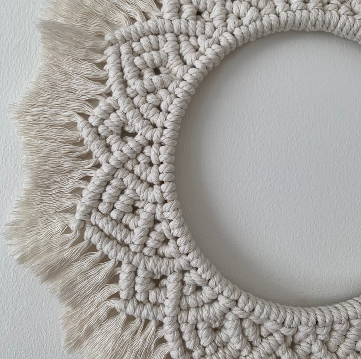 A full circle boho piece that is sure to be a talking point in your home. The cord is 4mm in diameter which helps with the overall appearance as this makes up a stiffer piece. The design is repeated and is linked to present that never ending circle.