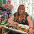 I fell in love with the beautiful fabric, because it reminded me of the chrysanthemum flowers in my Grandfather’s garden, they always seemed so huge when I was tiny. I chose this tumbling block design, as I thought it would show of the fabric. I also love growing primula’s myself & this year I have planted chrysanthemums too.