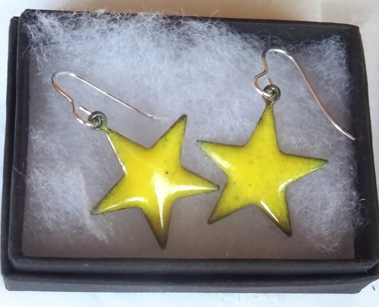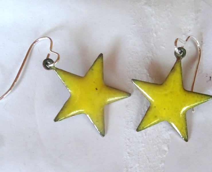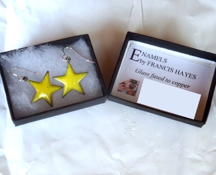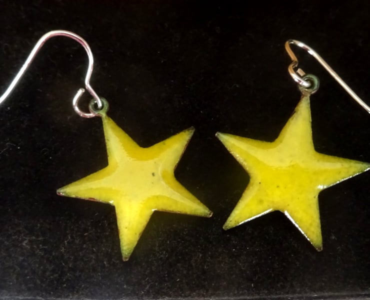 I have made these earrings by building up layers of golden yellow enamel over several layers of clear enamel. .