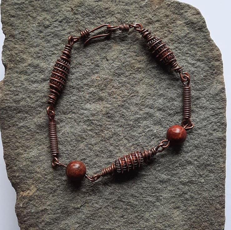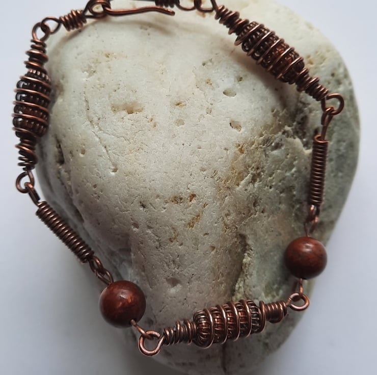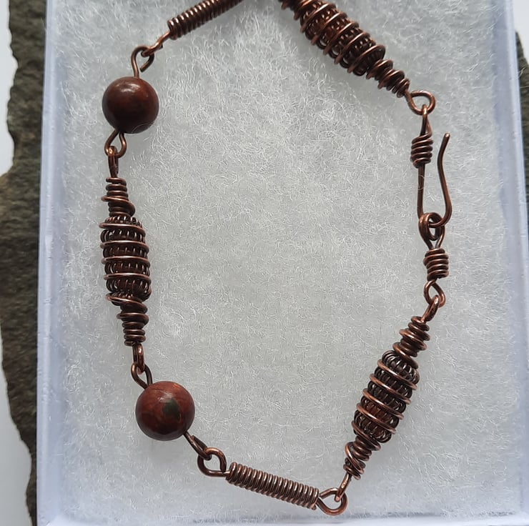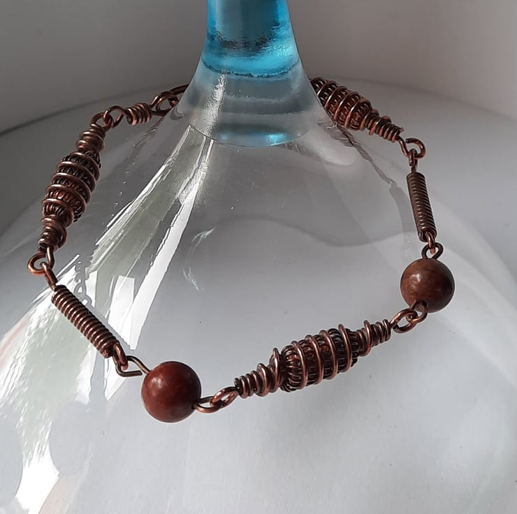 I make these bracelets in small batches with different colour gemstone or glass beads and in silver plated or copper wire.