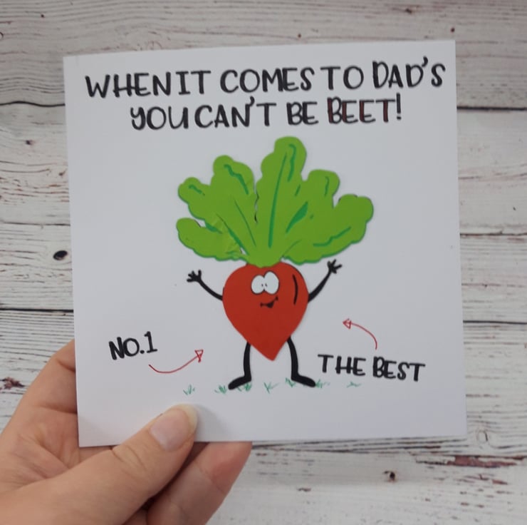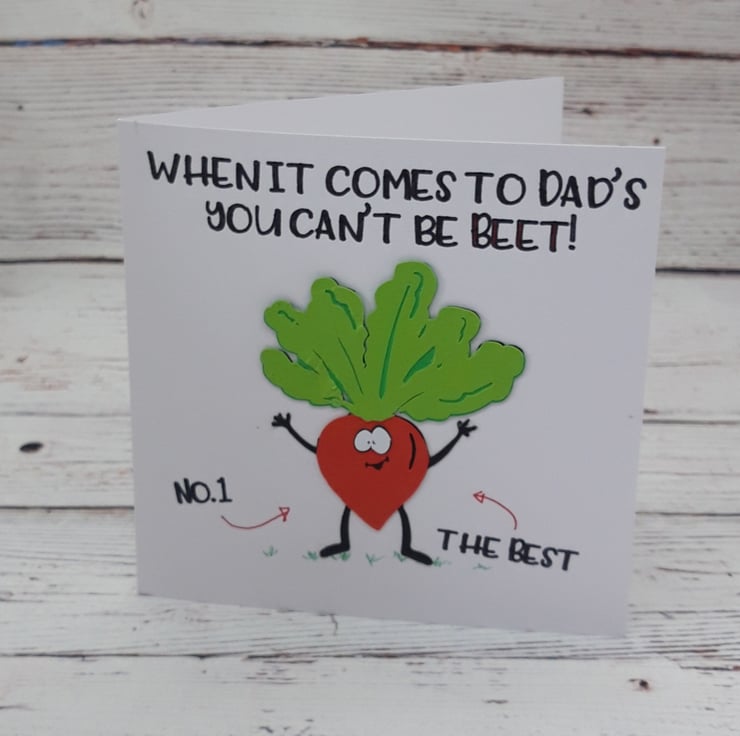 Tell Dad just how much he means to you - featuring the words 'When it comes to Dad's you can't be beet' and a smiling cartoon beetroot, this card is bright and fun.