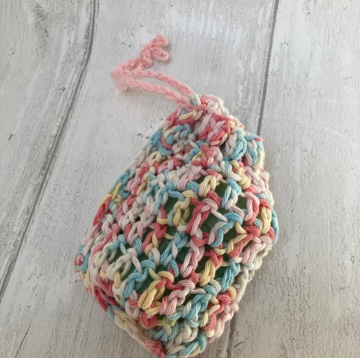 Soap bags are a great way to use up scraps of soap and they help you use less plastic by moving from shower gel to soap bars. Being easier to get hold of, they are great for kids in the bath and the textured, soft cotton does a gentle cleaning and exfoliating job on your skin.