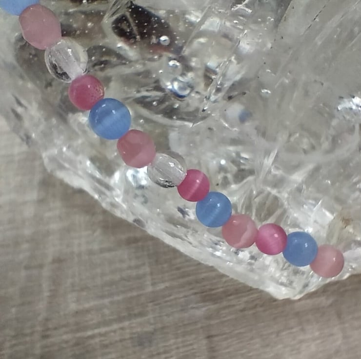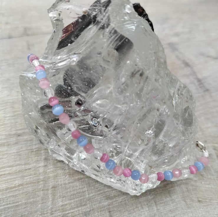 These glass cats eye and natural quartz beads are very pretty and really do shine beautifully.