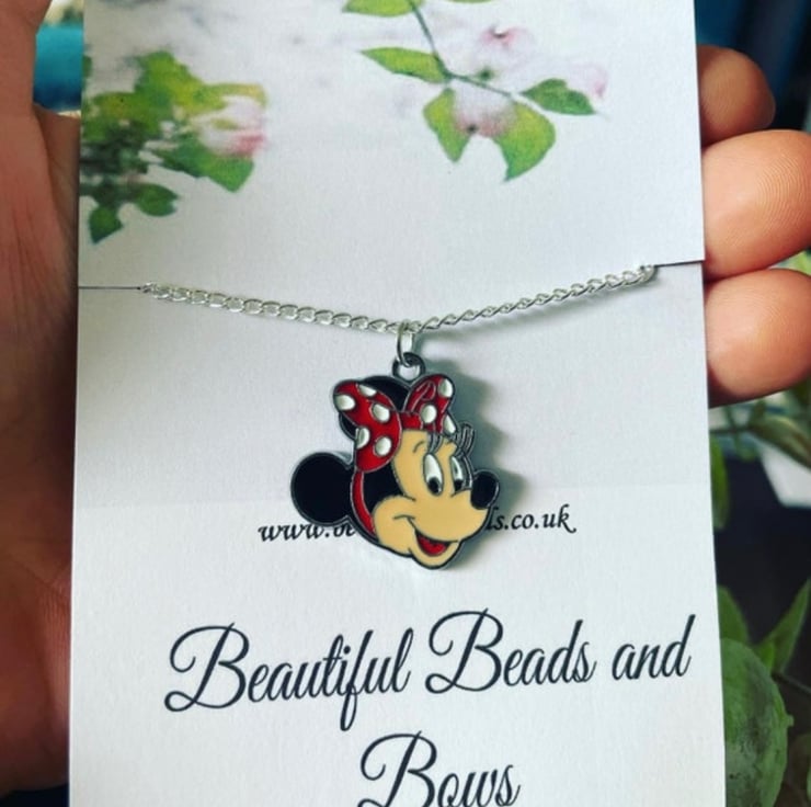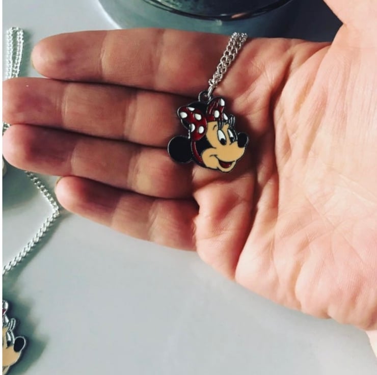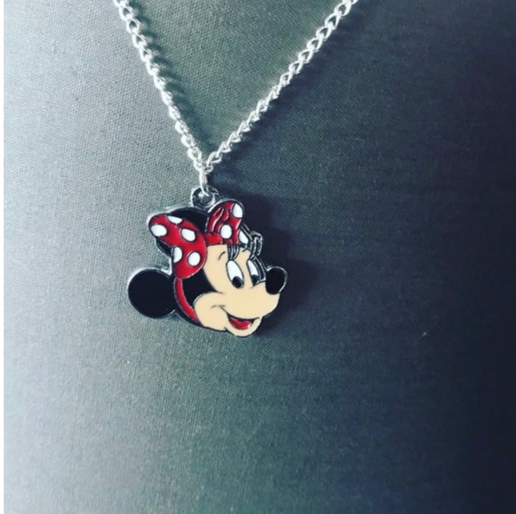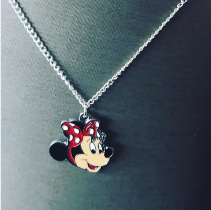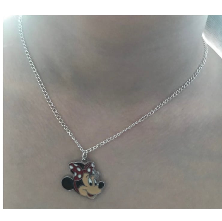 Curb chain silvertone with minnie mouse pendant charm necklace