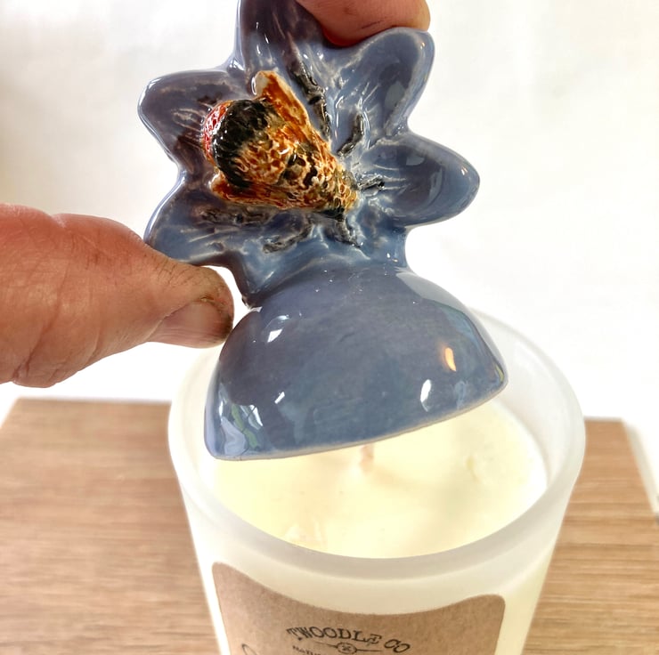 Handmade ceramic candle snuffer ornament. Attractive and practical these collectibles are individually painted & glazed to make each one unique therefore colours many vary a little from the photo.