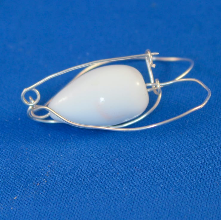 The bead is opaque white glass with faint touches of blush pink on it's surface. The brooch measures 5.5cm at it's widest point and 5cm tall from the top of the heart to the bottom of the bead.