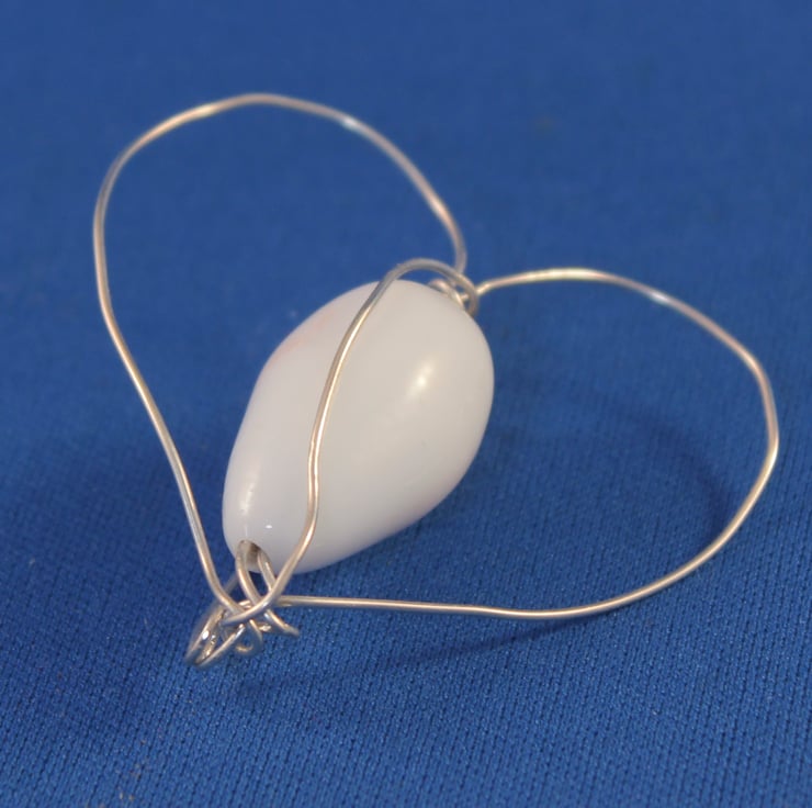 The wire winds around and through the bead creating an outline heart and then creating the pin at the back.