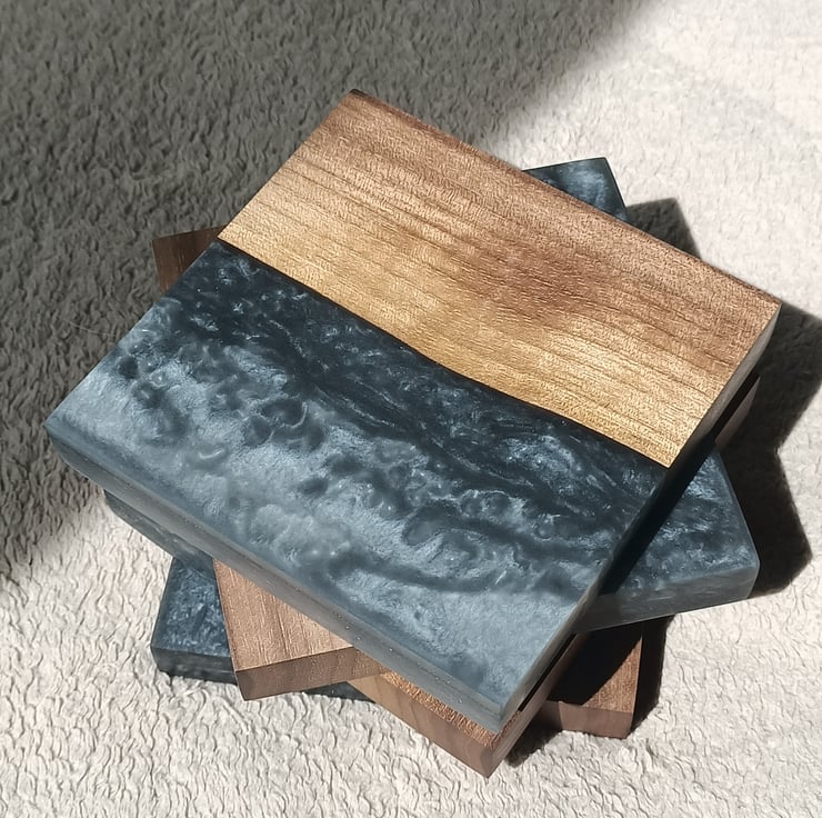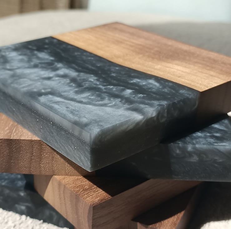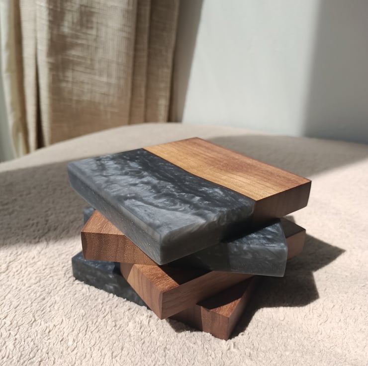 This order is for 1 set of 4 Grey resin and Walnut wooden coasters.