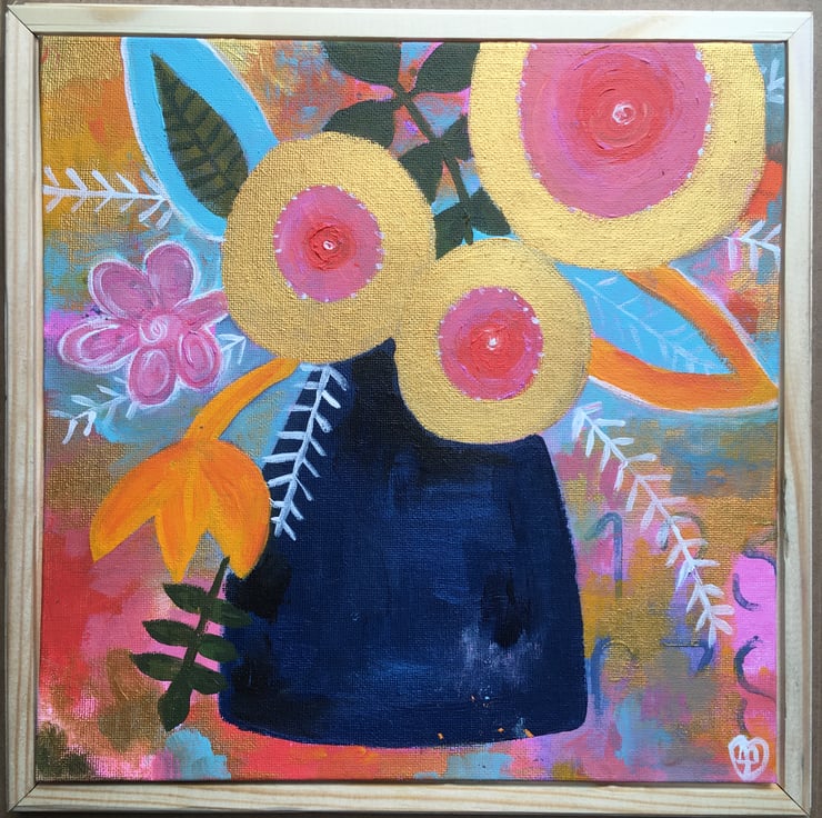 Painted in Acrylic Paints on Canvas Board, with a wooden frame surround.