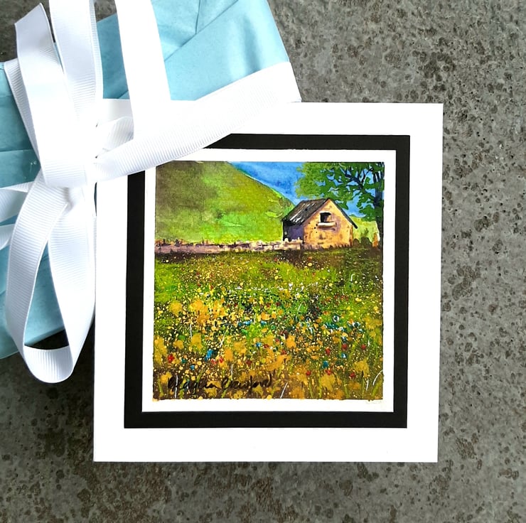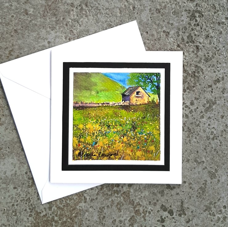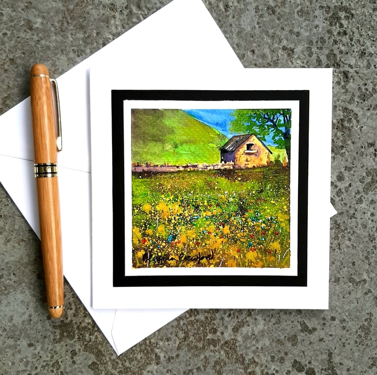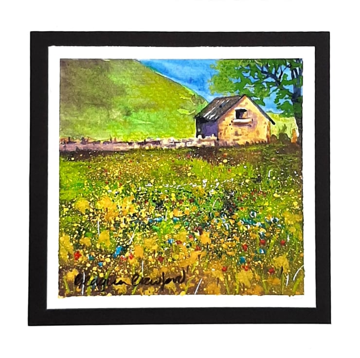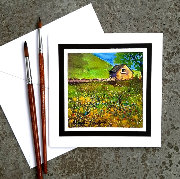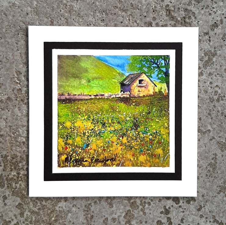 Inspired by a place where I used to walk. There was an old stone cow byre in meadows full of buttercups.