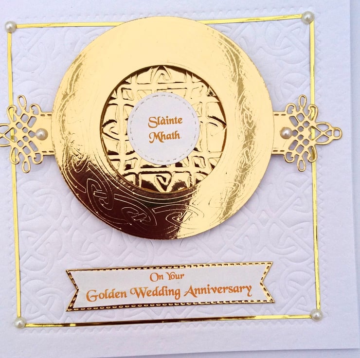 I designed this unique 3D GOLD Celtic Quaich/Loving Cup card (©Frances Martin) to be used for all celebrations. Golden Wedding, Wedding, Anniversary, Engagement,Christening, Birthday, New Home, Congratulations, Christmas, New Year etc or just to say “Cheers.” N.B. “A GOLDEN BIRTHDAY” is taken from the day and year of your birth, e.g A birthdate or 27th May 1976, their Golden Birthdays are when they are 27 and 76yrs. Slainte Mhath (Slanj-a-va) known the world over when raising your glass to say “Cheers” This card is the perfect accompaniment to a gift of a “bottle” for any occasion. SILVER QUAICHS ALSO AVAILABLE IN MY SHOP. All my cards are handmade with love, in my wee studio in Dunoon, Argyll, Scotland.