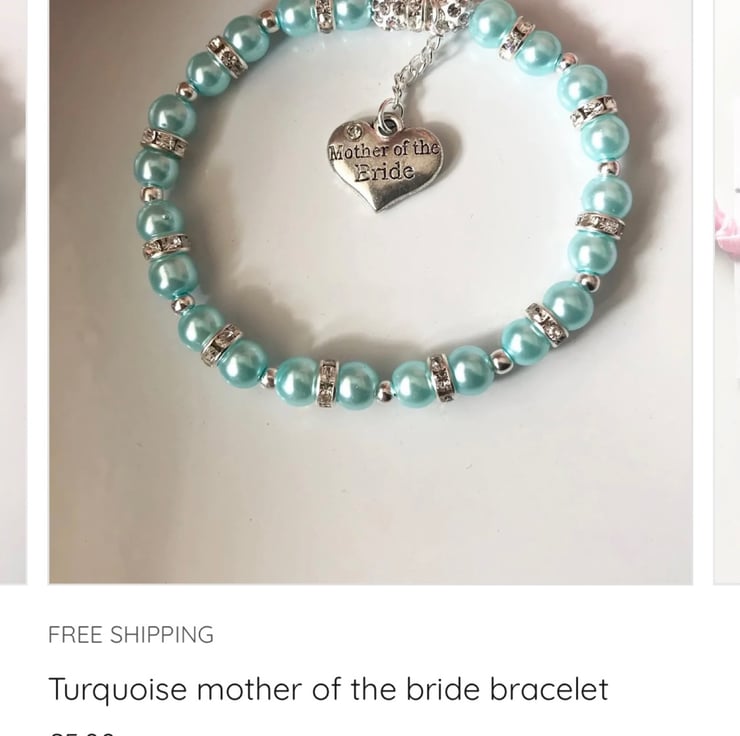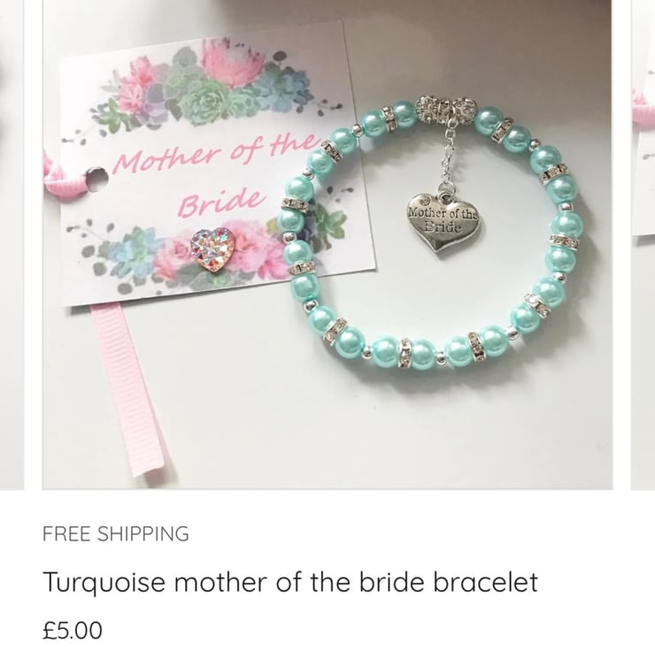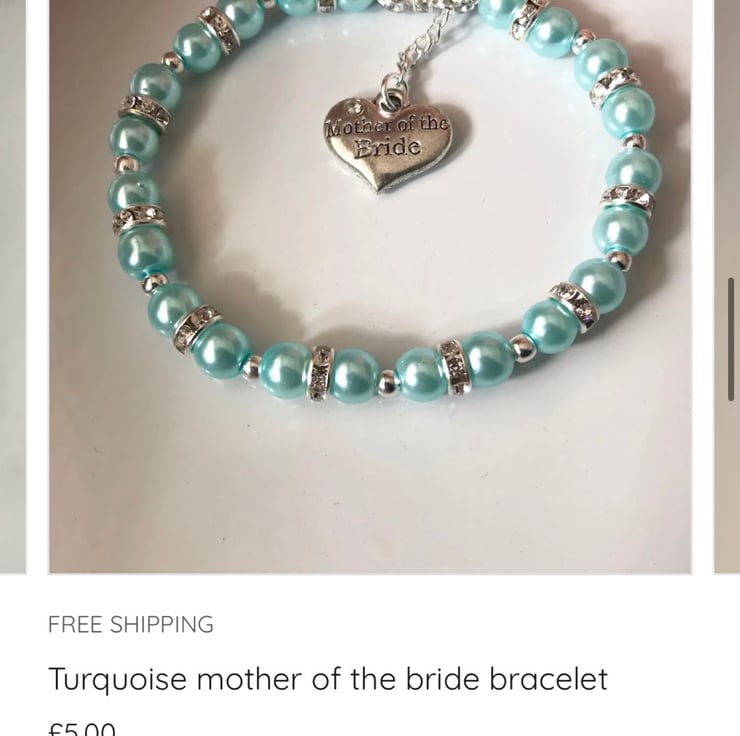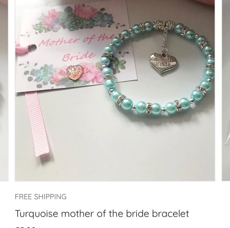 Stretch beaded turquoise bracelet with mother of the bride charm