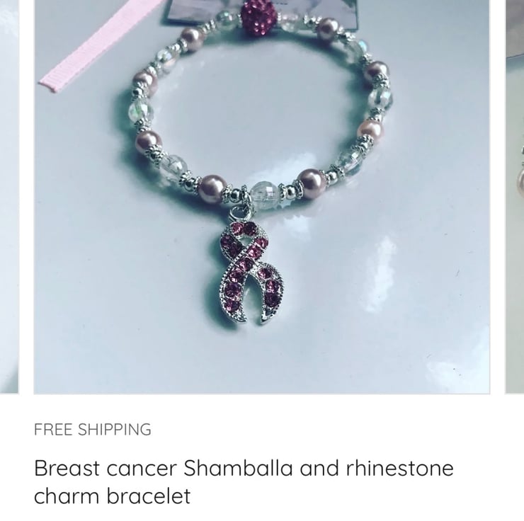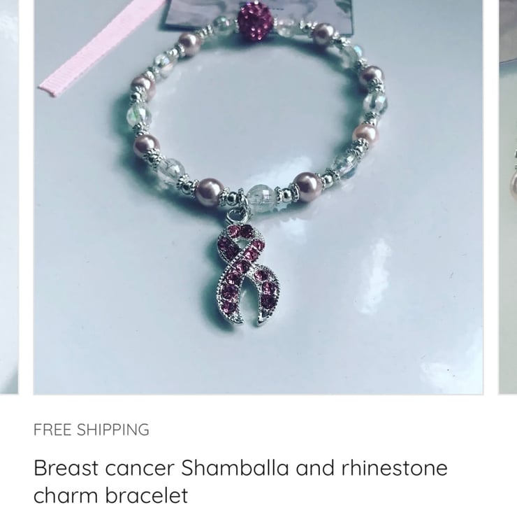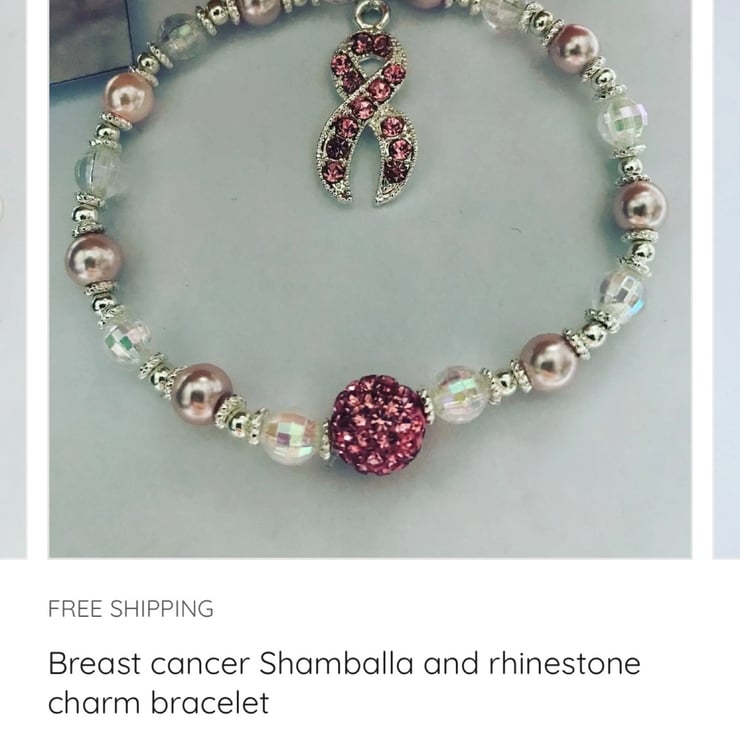 Ladies stretch beaded rhinestone pink breast cancer awareness bracelet