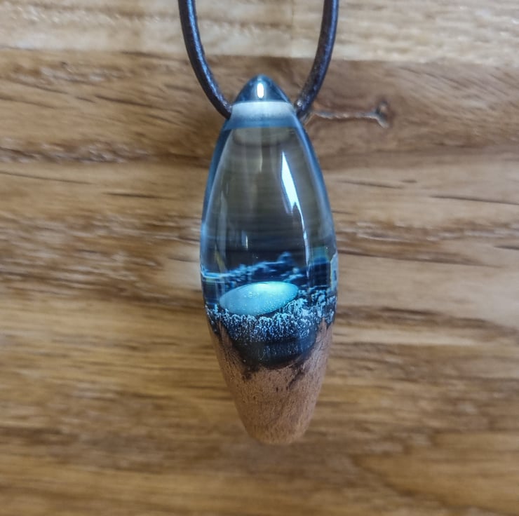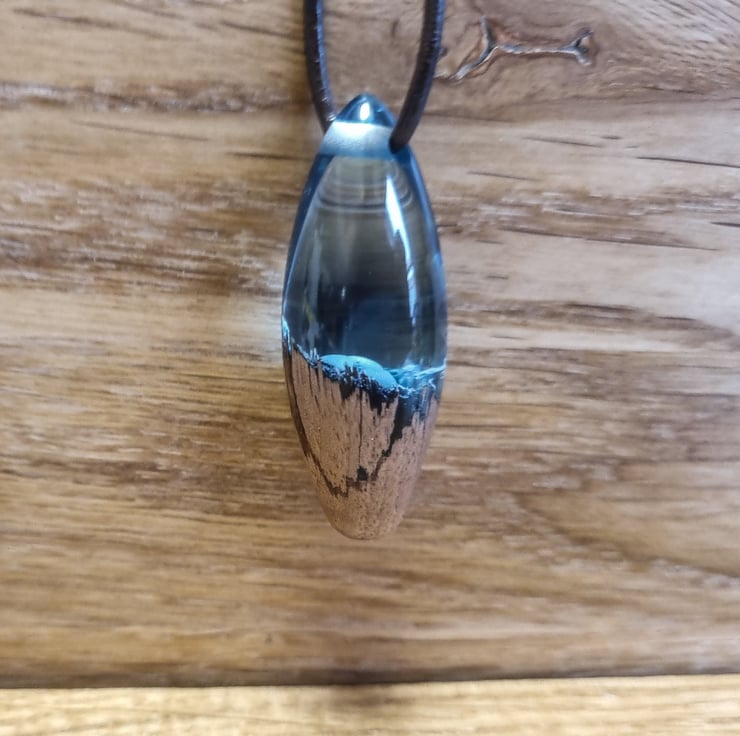 An amazing Pendant made from Resin and Oak showing a lot of the Black currant colour making it really stand out.
