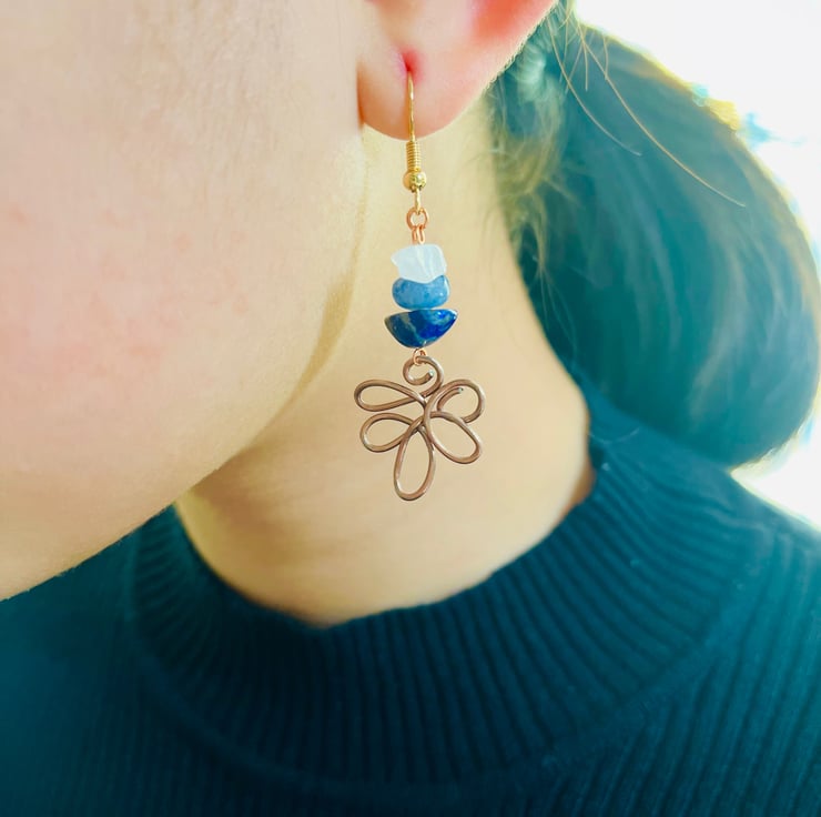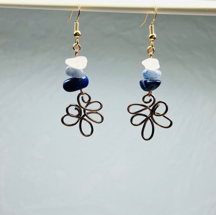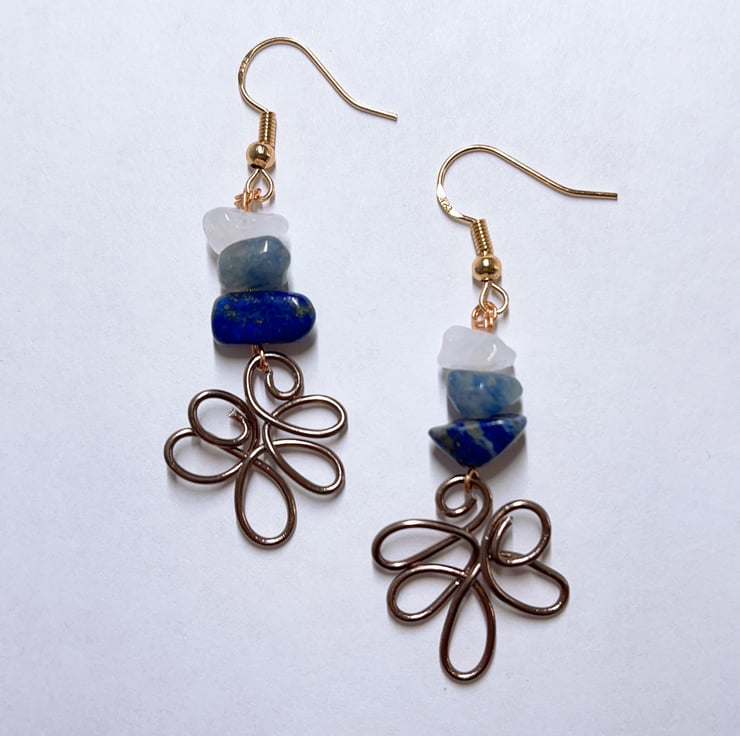 Earrings made with Clear Crystal Quartz, Blue Aventurine, Lapis Lazuli and Silver earring hooks