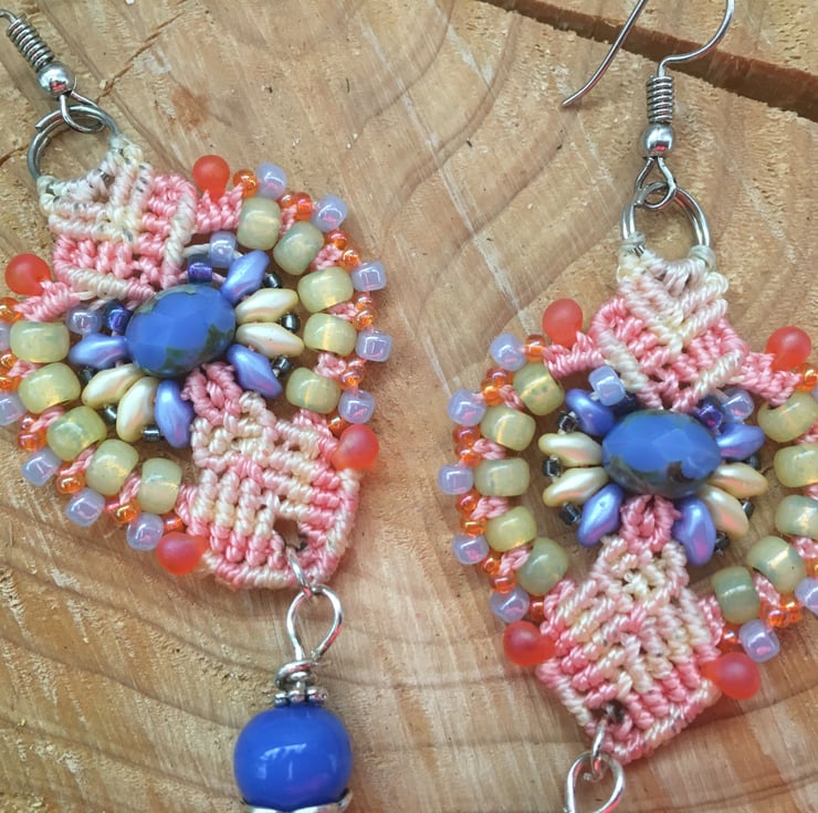 These eye catching colourful hand beaded micro macrame earrings have been made using the best quality materials and are perfect for a Summer holiday or as a gift.