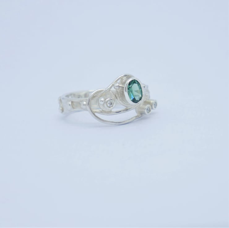 The tourmaline stone represents the colour of the Sea, and the diamonds symbolize the sparkle of the water in the Summer sunshine. A lovely holiday memory ........