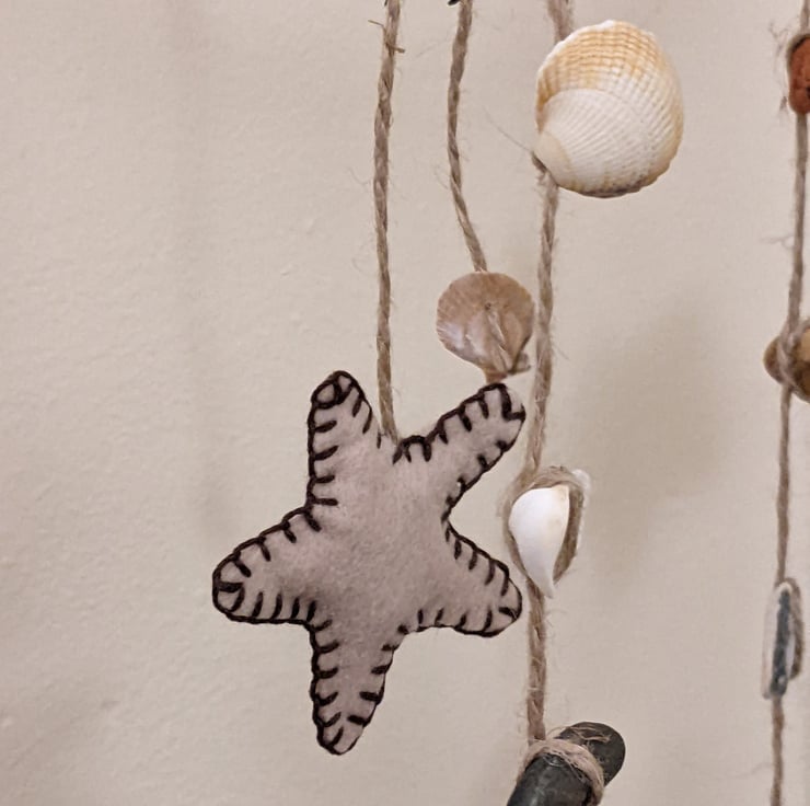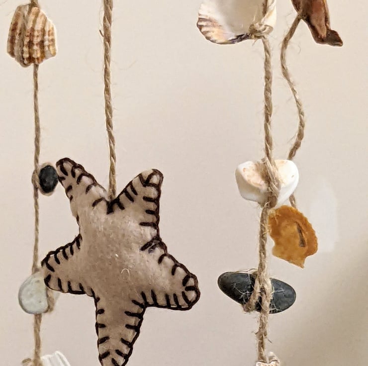 A gorgeous natural baby mobile made of sea-polished shell fragments, sea rocks and felt starfish or hearts. I was at the beach quite close to home recently and couldn't resist bringing some of it home. The natural materials will be a beautiful neutral addition to any nursery and will provide a sensory experience for your baby. Note that there are several options to choose from, but if you don't see what you are looking for, just message me and I'll do my best to fulfill your wishes. Prices and delivery time may vary for custom made orders. Note that the hanging arm for the mobile is not included. There is an option for custom orders, but if you want the mobile pictured, it is immediately available and delivery time will be only 3-5 working days.