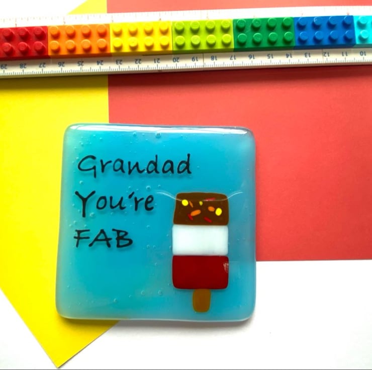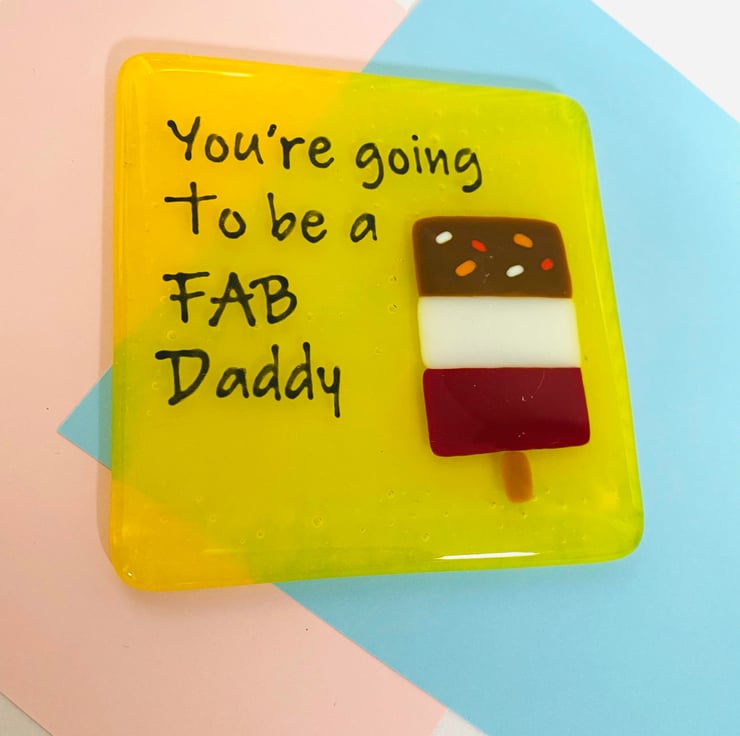 This Fused Glass Coaster "You're going to be a FAB dad" can be changed to have any name on it Dad, Papa anything you wish just comment when ordered. This is a perfect gift for for fathers day.