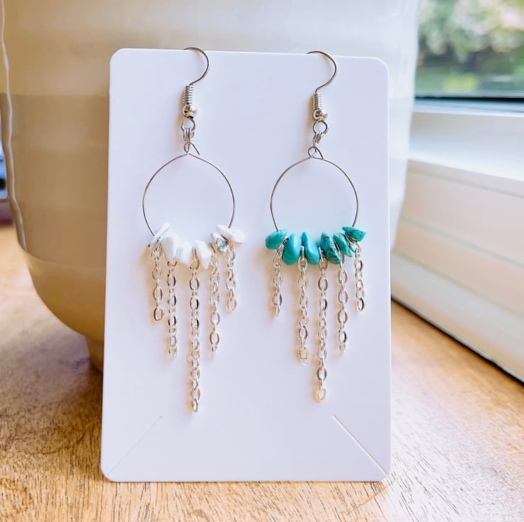 Earrings made with Turquoise, White Howlite and Silver earring hooks